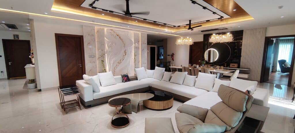 High above the vibrant pulse of Hyderabad, on the 22nd floor of a landmark building, a 4BHK flat quietly weaves a tale of warmth, comfort, and mindful design. Surrounded by a tapestry of other homes in one of the city’s most sought-after locations, this residence stands out—not for ostentation, but for the subtle luxury of thoughtful detail.